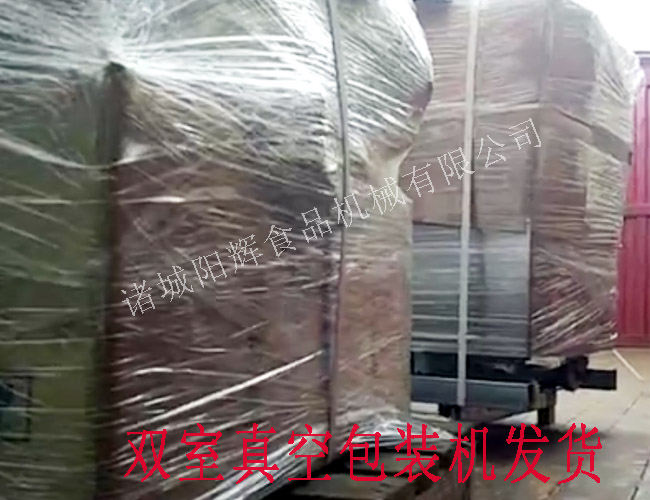 陽輝雙室真空包裝機剛剛被拉走,這是一臺DZ600-2S型雙室真空包裝機,一般用來包裝食品。視頻中,客戶順便購買了幾個真空泵和一些其他配件。