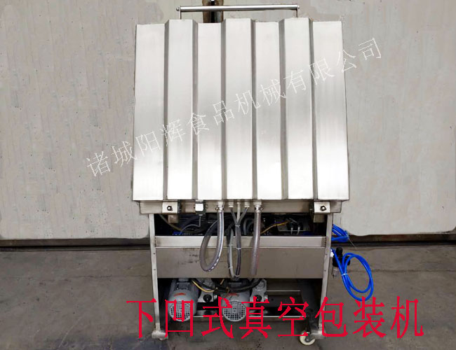 真空包裝機主要由上工作室、下工作平臺、機架、電氣系統、真空系統五大部分組成。工作過程:先合蓋,真空泵從工作室內抽氣,當達到預定真空度時,真空泵停止工作,加壓閥打開,氣囊充氣,壓條向下壓緊封口處,同時熱封條通電加熱,幾秒鐘后,熱封條斷電,加熱完畢,壓條繼續壓緊封口處冷卻2-3秒,放氣閥通電打開,使空氣進入工作室內,自動開蓋,完成一次工作循環。