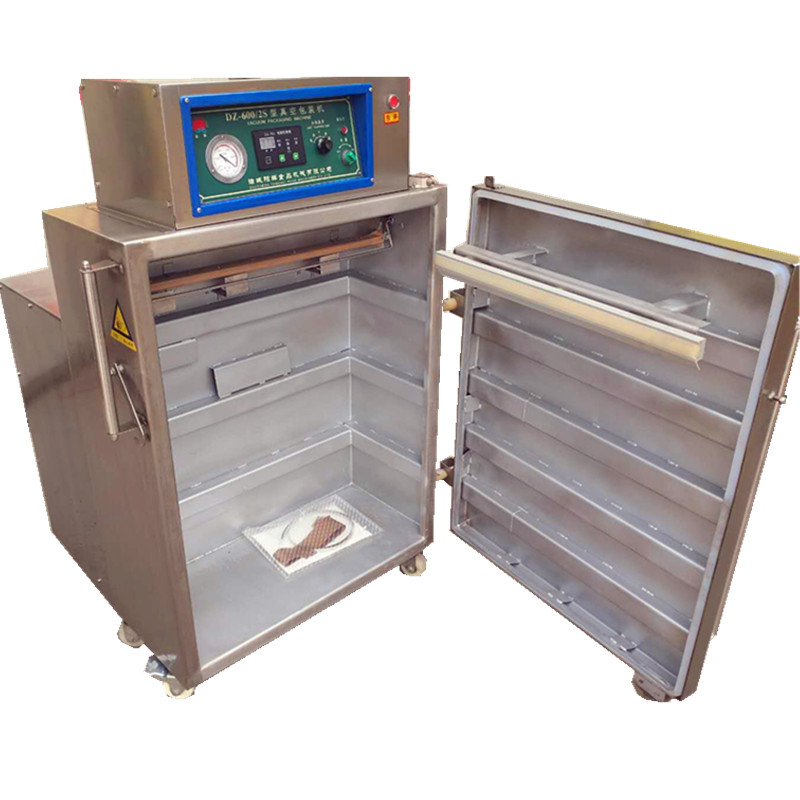 DZ650-2L立柜式小型真空包裝機屬于成型包裝,應對立柱型、立體型等大包裝食品原料、粉末物體、化工產品等。本機真空室容積大,采用立封式,可連同產品外包裝(如桶、盒等)一起放入真空室,完成內袋的真空封口。立式開門的操作方式,更有利于重物包裝,便于重物擱置,可配置充氮氣,可根據特殊產品的尺寸自行定制生產。