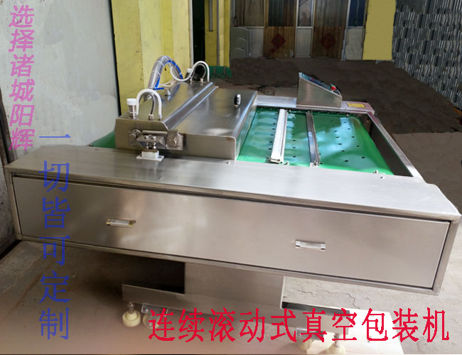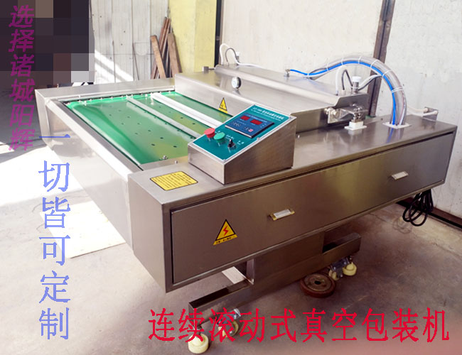 真空包裝是將包裝袋內抽成真空,然后熱封口,使包裝袋內行成真空,從而使被包裝的產品達到隔氧、保鮮、防潮、防霉、防銹、防蟲、防腐蝕、放污染等目的,有效地延長產品的保質期、保鮮期,便于存放和運輸。DZ-1000A連續滾動式真空包裝機是全自動真空包裝機中的一種,包裝速度快,包裝產品大,耗能低,擁有自動報警功能和一鍵冷卻清洗功能。操作簡單,設置好抽氣時間、加熱時間、放氣時間、冷卻時間后就可以開始工作了,期間無需按下真空蓋,無需收拾被包裝好的產品,只需要裝填真空袋就可以了。作為全自動真空包裝機,它可以連續自動完成上料、抽真空、熱封口、打印日期、冷卻、回氣、出料等工序,是客戶們非常喜歡的一種真空包裝機。